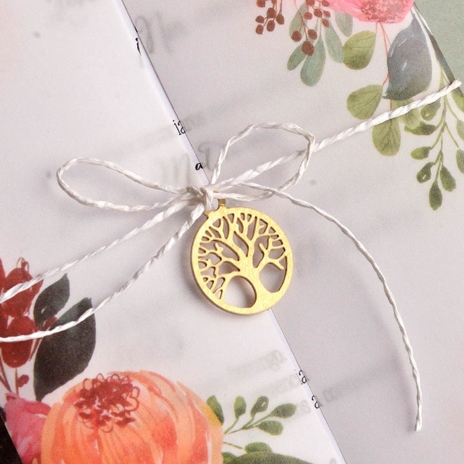 Accesoriu din hartie cotton cu finisaj auriu, decupat prin metoda taierii la laser. Se poate atasa la invitatiile cu snur (exemplu: invitatia 39819). Accesoriul se poate comanda doar la set de 10 buc. Pretul afisat este pentru 1 bucata.
