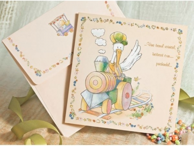 La interior se ataseaza un carton in forma de trenulet. Plicul este inclus in pret.