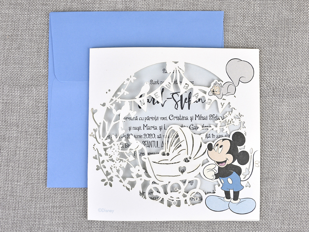 Invitatie de botez cu personaj Disney Mickey Mouse.