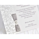 Invitatie de nunta clasica compusa din carton cu text, perla, panglica si plic.