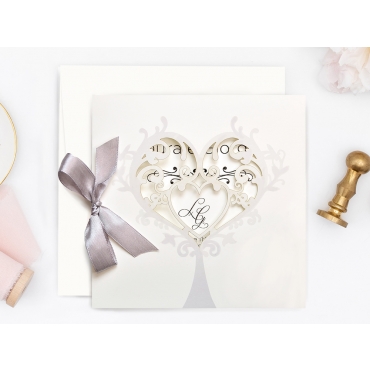 Invitatie de nunta compusa din 2 cartoane - unul pe care este atasat mirele si pe care se tipareste textul si celalalt carton pe care este imprimata mireasa. Include un snur roz. In momentul in care veti trage de snur, mirele vine catre mireasa.