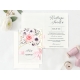 Invitatie de nunta decorata cu flori in combinatii de culori simple. Este reprezentata printr-un carton pe care se scrie textul principal si un bitelel in format rotund care poate cuprinde un mic mesaj de intampinare al invitatilor. Acestea sunt unite cu o panglica roz. Plicul este inclus in pret.